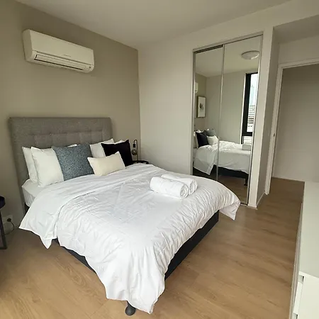 The self-catering facilities feature an equipped kitchenette with an electric kettle, a fridge, and kitchenware. The nearest Queen Victoria Market/A'Beckett Street bus stop is in the immediate vicinity of this apartment. The apartment boasts a patio.